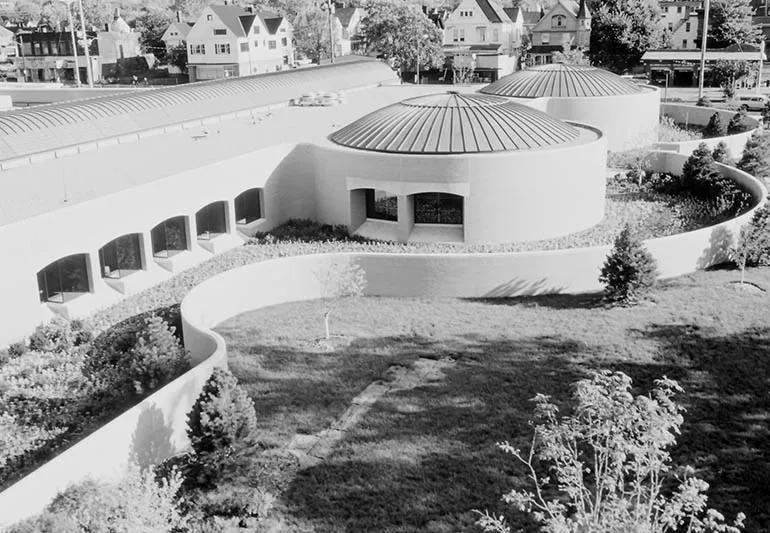 The Meyer Center for Magnetic Resonance Imaging, designed by Cleveland architect Norman Perttula, was the first building ever designed to house MRI machines. Completed in 1983, it was constructed without nails or iron-containing materials and is notable for the creative use of materials, especially wood, in the interiors.