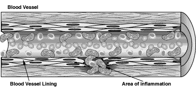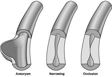 When inflamed, the blood vessels may become weakened and stretch in size, which can lead to aneurysms. The vessels also may become so thin that they rupture resulting in bleeding into the tissue. Vasculitis can also cause blood vessel narrowing to the point of closing off entirely (called an occlusion). If blood flow in a vessel with vasculitis is reduced or stopped, the tissues that receive blood from that vessel become injured and begin to die.